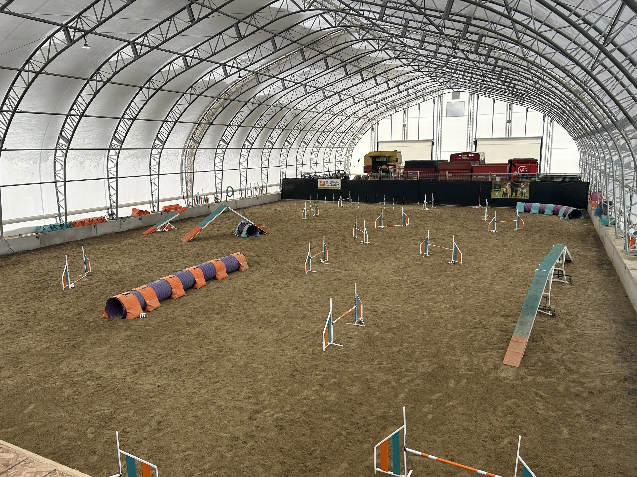 Les chiens doivent être en laisse en tout temps lorsqu’ils ne sont pas dans le ring d’agilité, c’est non négociable, même s’ils ont un bon rappel.